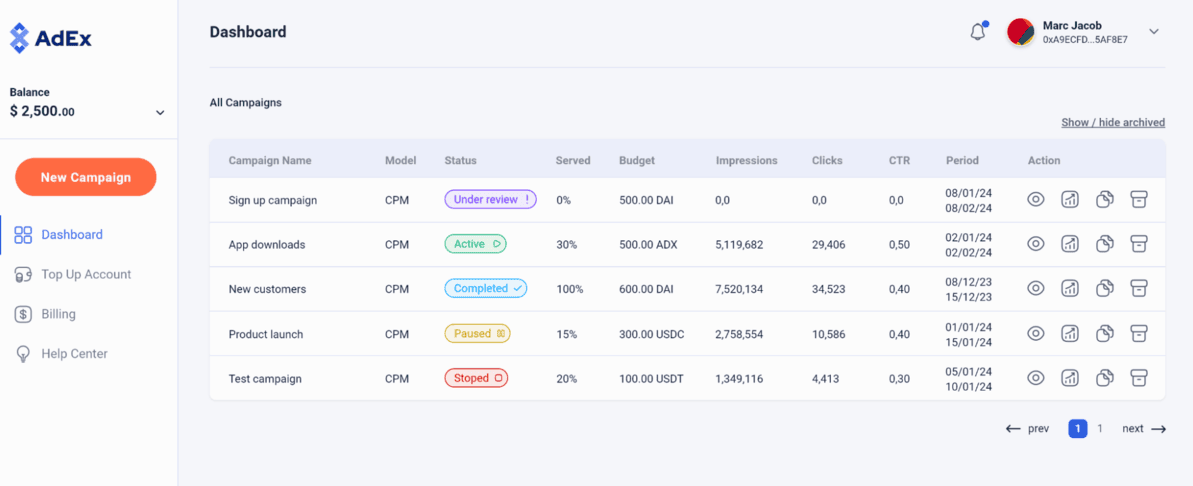 Alongside the platform launch, AdEx successfully initiated campaigns for prominent names such as Ambire Wallet, BitStarz, CEX.io, and Stremio, achieving impressive results and showcasing the platform's potential. These campaigns highlighted the platform’s ability to drive impactful outcomes for advertisers, reinforcing its value as a key player in the evolving Web3 advertising ecosystem.