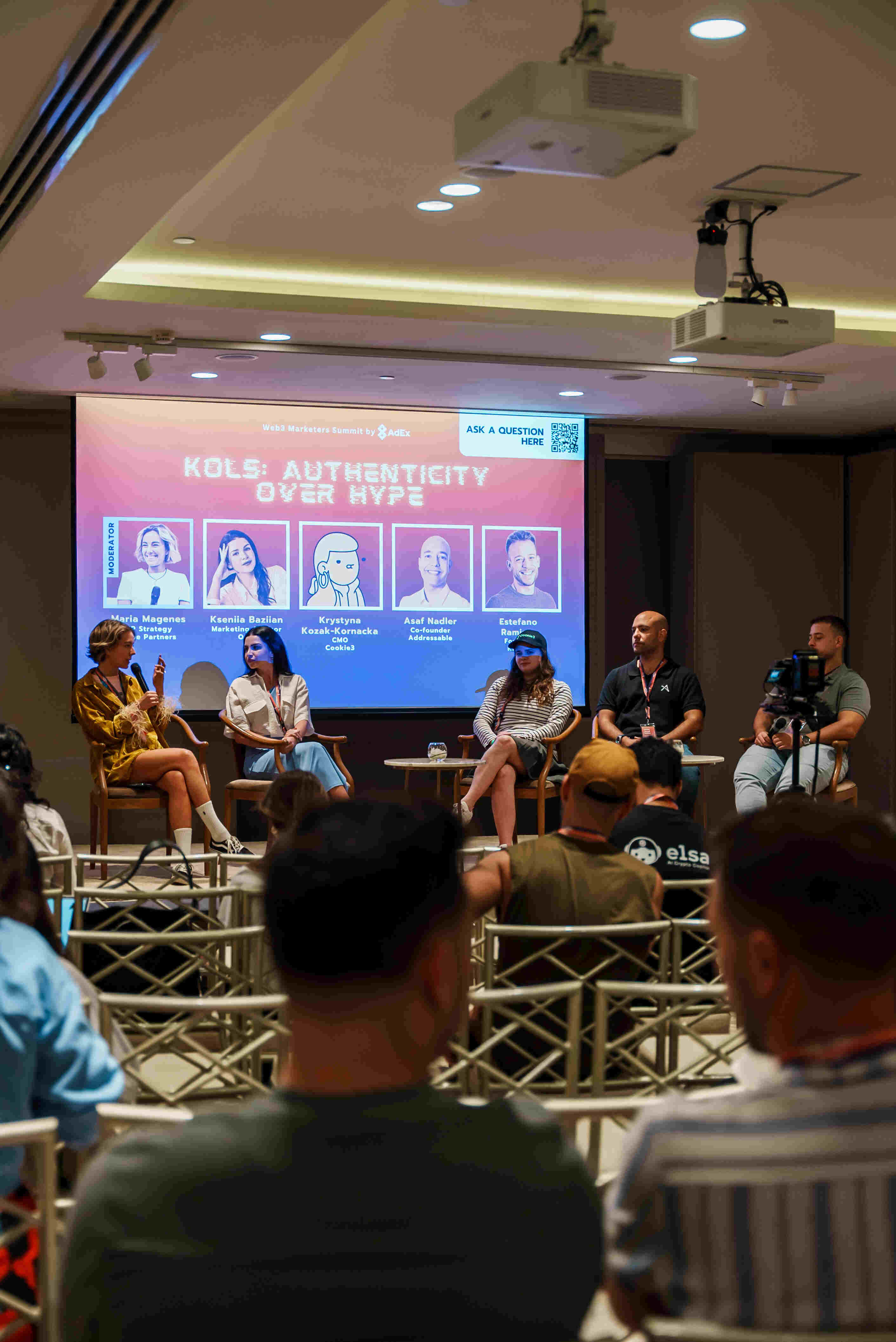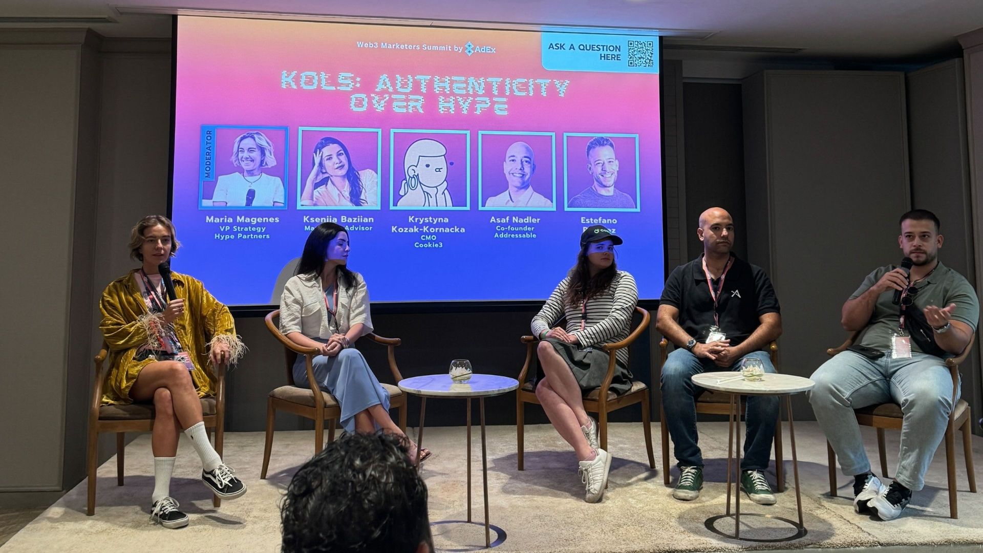 The KOL-focused panel featured Web3 marketers with deep expertise in collaborating with Key Opinion Leaders (KOLs). Speakers included Kseniia Baziian (Marketing Advisor at Orca), Krystyna Kozak-Kornacka (CMO at Cookie3), Asaf Nadler (Co-founder at Addressable), and Estefano Ramirez (Founder at KAIKA). Moderated by Maria Magenes (VP of Strategy at Hype), the panel explored the significant role KOLs play in Web3 marketing and how they can help build trust and credibility for brands. The discussion highlighted how strategic partnerships with KOLs can strengthen brand authenticity in the Web3 space.