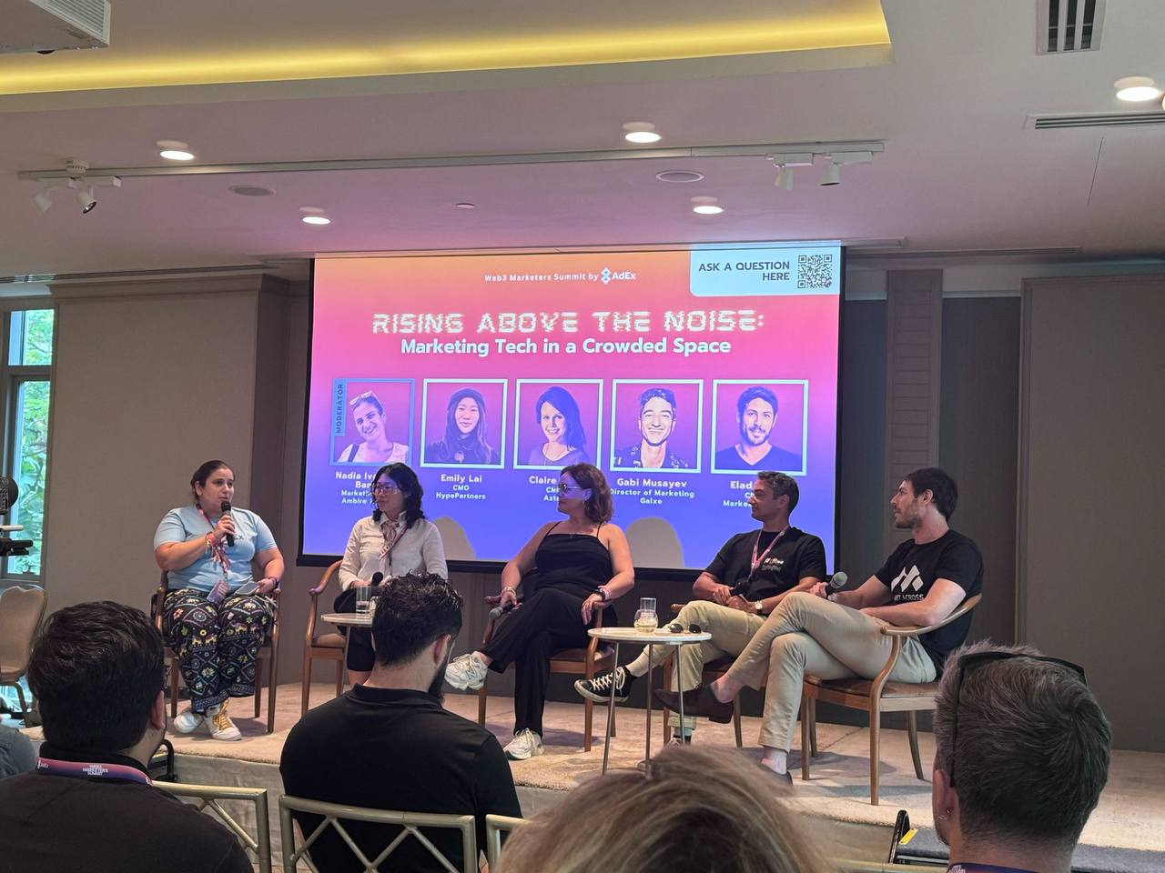 This panel brought together some of the top names in Web3 marketing, including Emily Lai (CMO at Hype Partners), Claire Kart (CMO at Aztec), Gabi Musayev (Head of Marketing at Galxe), and Elad Mor (CEO of Market Across). Moderated by Nadya Ivanova-Banda, Business Development at AdEx & Ambire Wallet, the session focused on how to rise above the noise in the Web3 space. The discussion centered around the importance of maintaining consistent marketing efforts, regardless of market conditions, and how long-term strategy and brand visibility are key to success in an often volatile landscape.